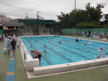 台風の置き土産でしょうか、冷たい空気で肌寒く感じる気候でしたが、元気いっぱい夏休みのプールが今日から始まりました。天気のせいか、あまり参加者は多くなかったですが、子どもたちの歓声がプールに響いていました。