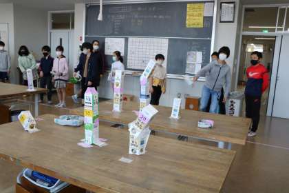 昨日のの学級は、輪投げ大会に間に合わず、今日の学級は制作のところに間に合わず見ることができませんでした。ごめんなさい。試行錯誤して作ったのでしょうけれど、楽しそうに遊んでいるところばかりです。