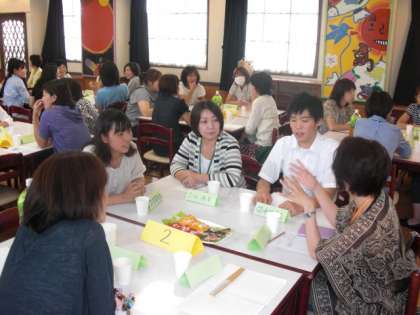 午後は、単P研修会が行われました。単Pとは学校単位のPTAという意味で、そこで行われる研修会のことを単P研修会といいます。今日は「コミュニケーション力大作戦」と称して、保護者と教員を交えた少人数のグループを10つくり、活発に意見交換をしました。難しい話になるのではなく、ざっくばらんに話すことができて、とても楽しかったという声が聞かれました。自分たちの子ども時代を振り返ったり、遊び方について話が出たり、時間が終わってもまだまだ話しているグループがあるくらいでした。研修委員会のみなさん、本当に準備等ありがとうございました。