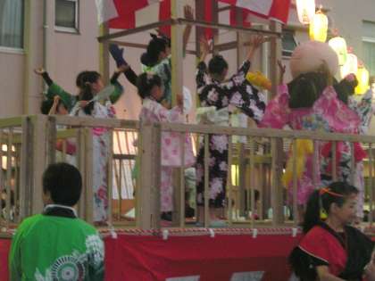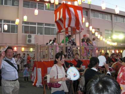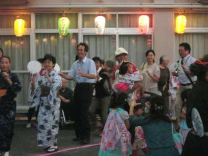 21日の夕方には、友愛十字会の盆踊りがありました。例年、山野小の4年生がやぐらの上で踊るということで、応援団として教員総勢10名駆けつけました。会場は、お年寄りから子どもたちまで、とっても活気にあふれています。その雰囲気に、先生たちも思わず引き込まれ、踊り始めました。やはり、踊りは見るものではなく、踊るものですね。とっても楽しかったです。