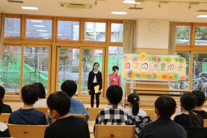 「10歳の決意の会」の様子です。今年度は学級ごとの取り組みとなります。どのクラスも真剣に臨んでいます。
