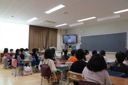 1年生は4月の入学式に参加しないけれど歓迎の気持ちを何とか表したいと、校歌を練習しビデオを作りました。6年生はもちろん、卒業式という最後の授業に向けて一生懸命に頑張っています。2年生はお楽しみ会などを通してクラスの絆を深め、3年生はさらに長縄大会などを通して学年の絆を深めることに一生懸命取り組みました。4年生は高学年になる思いと10歳になりこれからの自分に挑戦する決意をもちました。5年生は最高学年になるための様々なプロジェクトを立ち上げ活動しました。どの学年も一生懸命に頑張っていることを紹介しました。