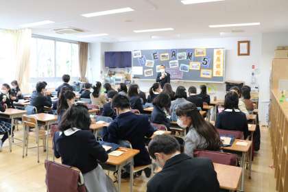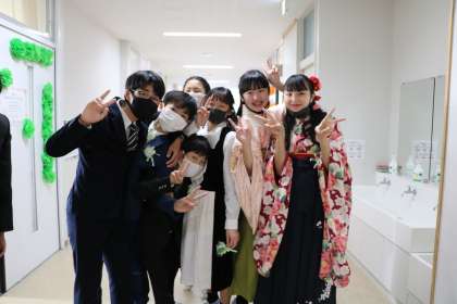 卒業式前に、教室での様子です。胸花をつけたり、普段と違う服装に少々興奮気味の卒業生です。