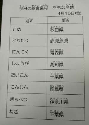 4/16 今日の給食