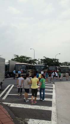 日光林間学園、いよいよ始まりました。今羽生PAでトイレ休憩です。薄日がさしてきました。