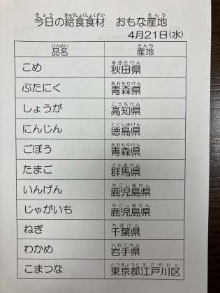 4月21日 今日の給食