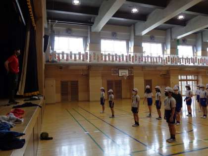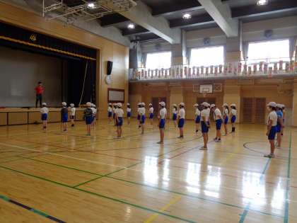 前半は、集合・整列などの集団行動を確認しました。やり方は分かり切っていることですが、きちっとやろうとすると思いの外大変です。基本を思い出しながら、最高学年にふさわしい集団行動を目指します。