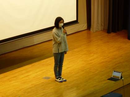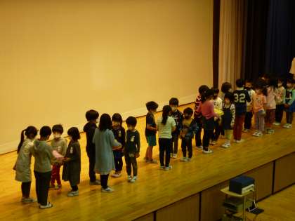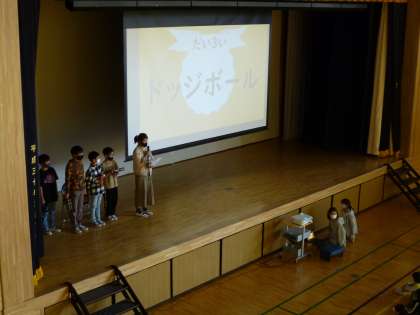 始めに6年生のお姉さんからのお話がありましたが、みんな話し手をよく見て聴くことができていました。次に在校生からは、学校に関するクイズがスクリーンに映し出され、計画委員さんが正解を出す前に楽器を使って演出するなど盛り上げてくれました。クイズは、3種類。「好きな遊び」「好きな給食」「好きな場所」ベスト3を紹介してくれました。そして、2,3年生が作ってくれたプレゼントを3年生の代表が私に来てくれました。もらった1年生が大事そうに抱えて歩く姿が可愛らしかったです。