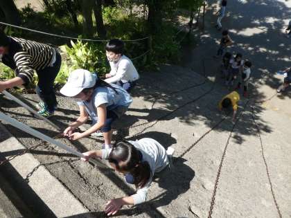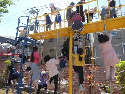 1年生を迎える会が終わり、いよいよ休み時間に校庭で遊ぶことになりました。山野の山やアスレチックなどで、元気いっぱいに遊びました。今日だけでは遊びきれなかったので、これからたくさん遊びたいです。