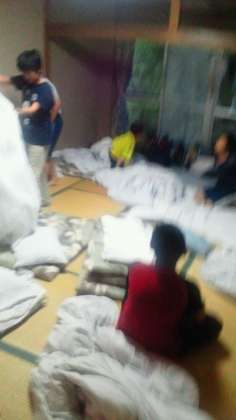 朝から雨が降ってます。昨夜はよく眠れない子もいたようですが、みんな元気です。布団をたたみロビーでの朝会をすませ、これから朝ごはんです。今日は臨機応変にスケジュールを変える可能性があります。