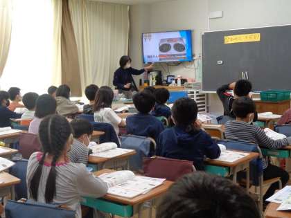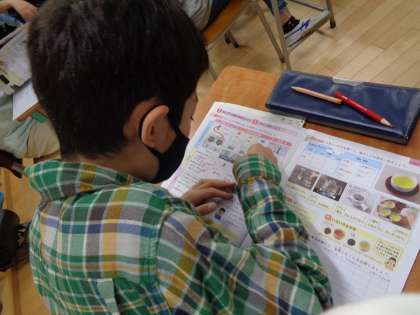 『私の生活、大発見』の単元です。台所で作業をするときに、おうちの方が安全面で気を付けていることを発表していました。「まな板は、必ず洗剤で洗う。」「ガスを使うときは換気をする。」など、友達の発表を聞いて、その理由をみんなで考えました。