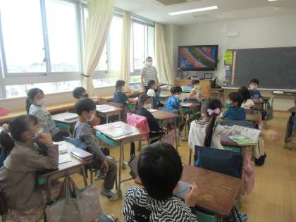 子供たちはALTの先生の問いかけに楽しそうに答えていました。