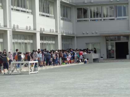 昇降口が開くまでの時間は、みんなきれいに整列して待っています。チャイムが鳴っても押したり走ったりすることなく、とてもスムーズな入室ができています。一人一人のちょっとした思いやりで気持ちのよい朝になっています。