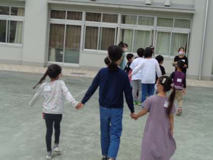 6年生が1年生の教室まで迎えにきてくれて、一緒に校庭に行きました。手をつないでくれる6年生のさりげない優しさが随所で見られました。