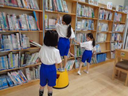 絵本の棚の場所や本の並び方を教えてもらいました。