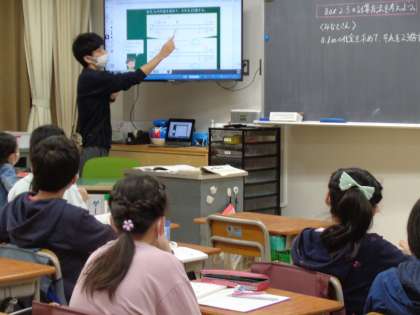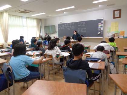 5年生 少人数算数の様子です。自分の進度に合ったコースで学習しています。理解が深まるようにいろいろなやり方で学んでいます。