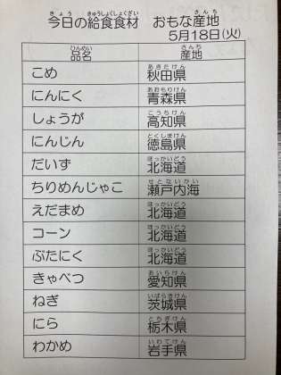 5月18日 今日の給食