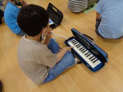 ホースの持ち方、鍵盤の押さえ方など鍵盤ハーモニカの使い方だけでなく、演奏をしていない時の待ち方も教えていただきました。