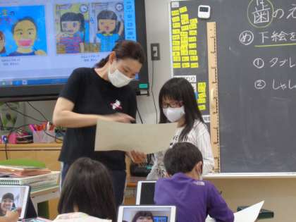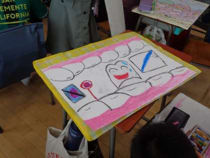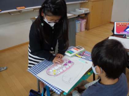 先生にアドバイスをもらって、より良いポスターにしようとしていました。