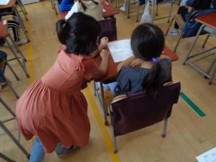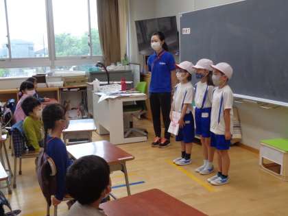 朝の時間に2年生が1年生の教室に来ました。