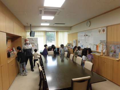 「ここが校長室です。校長先生がお仕事をしています。」など、分かりやすく説明していました。