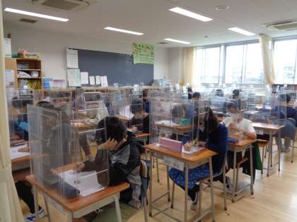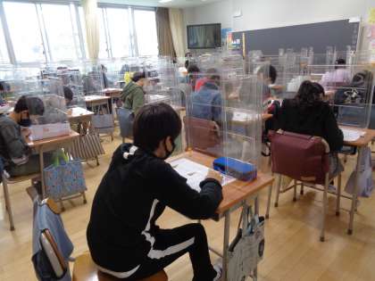 6年生がテストをしていました。写真を撮るのも申し訳ないぐらいの静けさでした。