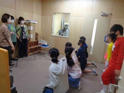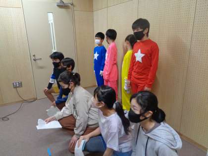 計画委員さんと交流委員さんが委員会発表集会に向けて、練習をしています。