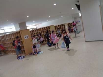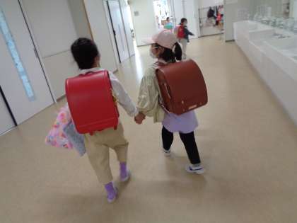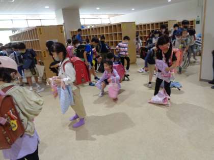 月曜日は、たくさんの荷物があります。上履きを履くのも一苦労です。