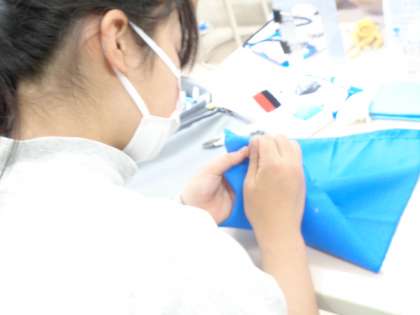 巾着袋・ティッシュケース・ファスナー付きポーチ・雑巾など、自分の作りたいものを考えて、自分で布や材料を用意しました。約3週間後には、完成します。