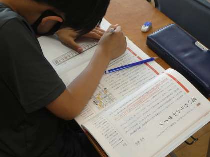 「思いやりのデザイン」という説明文を読んで、筆者の考えを受けて、自分の考えを述べます。前日に説明文の読み取りをして、筆者の考えを学習しました。今日は、自分の考えをノートに書きました。理由もしっかりと書かれ、一人一人が深く考えていました。