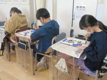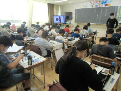 黒板には「4枚書いた中で自分が納得がいく作品を提出する」と書かれていました。教室は静寂で包まれ、最後まで真剣でした。