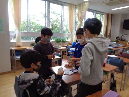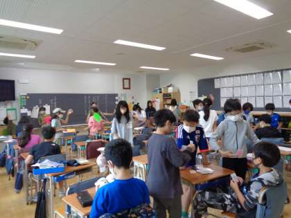 5,6年生は教室で遊びます。朝の時間を自由に使え、心も満たされます。