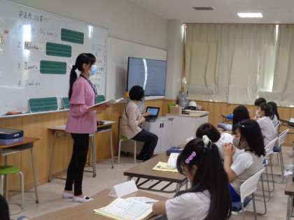 英語支援員の方の口の開きを見たり、CDの音声を何回も聞いたりして、発声の仕方に慣れているところです。