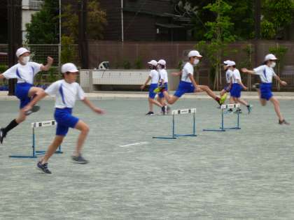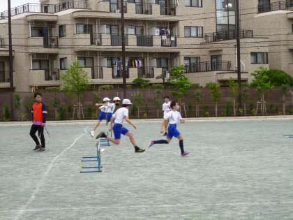 タイミング良くハードルを跳び越すために、どうすればよいか考えながら取り組みました。