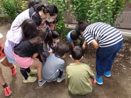 2年生は、生き物への興味が広がって、山野の山やビオトープで、いろいろな生き物を捕まえていました。