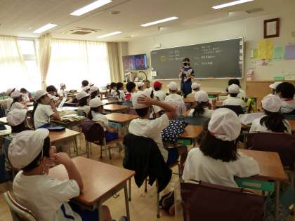 5年生は、上学年として、2年生の記録をとったり、各項目のテストの場所に連れて行ったりと、やることがたくさんあります。教室で、先生から説明がありました。