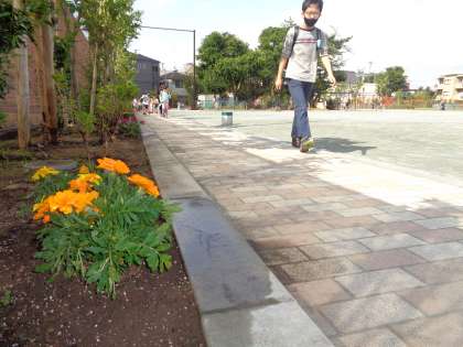 美化委員さんは、落ち葉のあるところを見つけて、掃除していました。