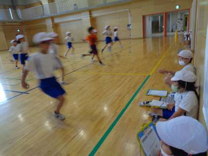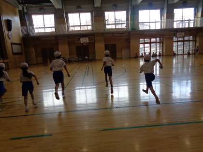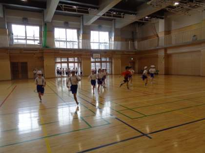 体育館では、シャトルランの計測を行っていました。