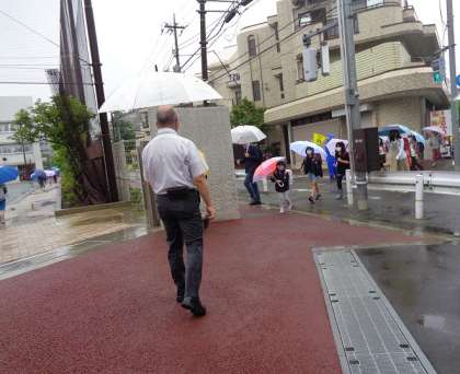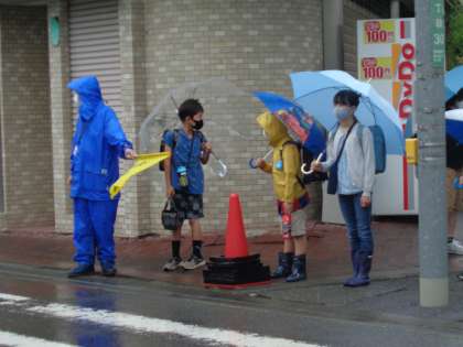 雨の登校でした。風も強かったので、学校までの道のりが大変だったと思います。