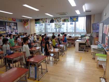 そして、その演奏に合わせて、クラスみんなで歌いました。朝から元気に歌って、楽しい気持ちになりました。