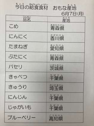 6月7日 今日の給食