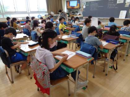 1年生と6年生は、明日、交流活動があるので、今日が朝学習でした。
