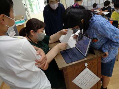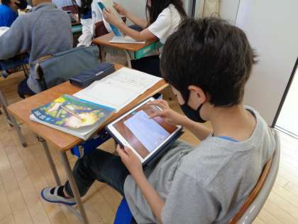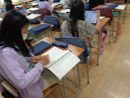 書き上がった人から、自分の文章を写真で撮って、「ロイロノート」にアップします。そして、友達の文章を読み比べました。