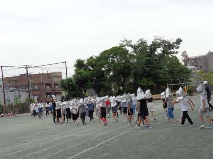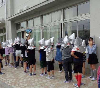 5年生は、誰一人しゃべらず、素早く並び、校庭へ移動していました。