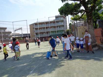 6年生が迎えにきてくれて、一緒に校庭に行きました。