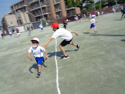 ドッジボールでは、1年生にボールを投げさせてくれたり鬼ごっこのオニを6年生がやってくれたりと、1年生が楽しめるようにしてくれていました。