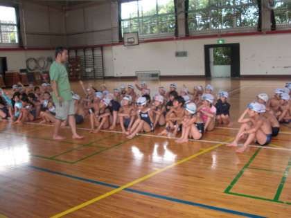言葉通りのにわか雨、子どもたちは体育館で待機中です。