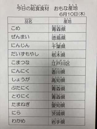 6月10日 今日の給食