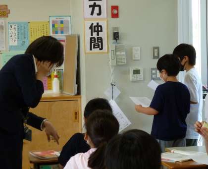 書き終えた人同士でお互いの文を読み合い、手直しをしていました。