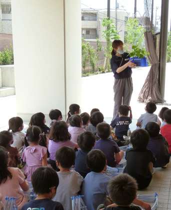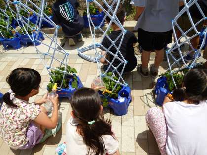 あさがおのつるが伸びてきました。みんなでどうしたらよいか考えました。